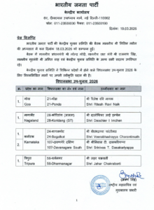 भारतीय जनता पार्टी ने गोवा की 21- पोंडा सीट से रितेश रवि नाइक, नागालैंड की कोरिडांग सीट से दाओचियर आई इम्चेन और त्रिपुरा की धर्मनगर सीट से जहर चक्रवर्ती को मैदान में उतारा है.