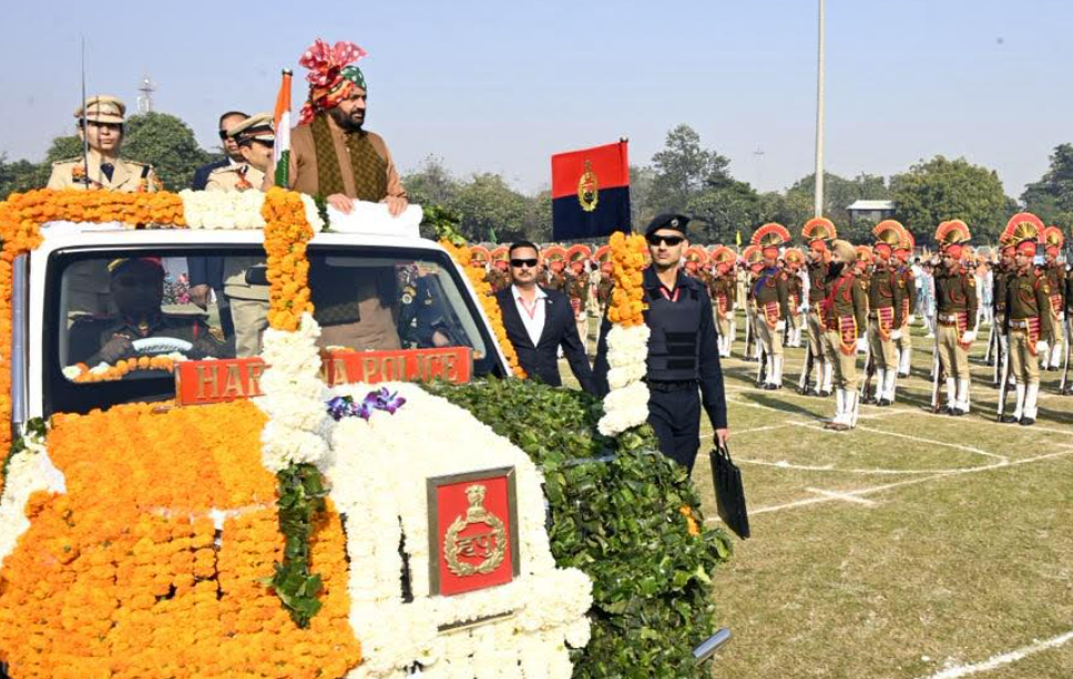 चंडीगढ़, 26 जनवरी–हरियाणा के मुख्यमंत्री नायब सिंह सैनी ने 77वें गणतंत्र दिवस के अवसर पर सोमवार को जिला गुरुग्राम में आयोजित समारोह में राष्ट्रीय ध्वज फहराया। इससे पहले उन्होंने वीर शहीदी स्मारक पर माल्यार्पण कर शहीदों को श्रद्धांजलि अर्पित की। मुख्यमंत्री ने हरियाणा पुलिस, महिला पुलिस, होमगार्ड तथा स्काउट्स सहित विभिन्न टुकड़ियों की परेड का निरीक्षण किया और उन्हें सलामी ली।