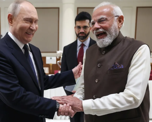 रूसी राष्ट्रपति व्लादिमीर पुतिन शुक्रवार को नई दिल्ली के हैदराबाद हाउस में प्रधानमंत्री नरेंद्र मोदी के साथ शिखर वार्ता करेंगे, जो 23वें भारत-रूस वार्षिक शिखर सम्मेलन का प्रतीक है।