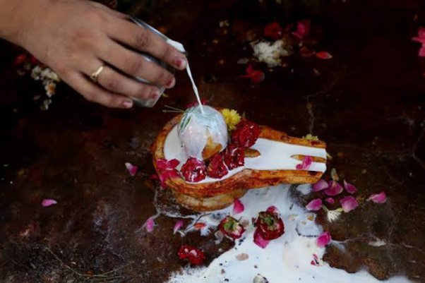 शिवलिंग को गंगाजल, दूध, दही, शहद, घी और जल से स्नान कराएं (जलाभिषेक)।