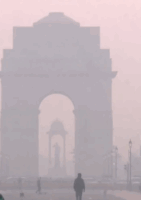 Delhi हवा में जह/रीला स्तर, इंडिया गेट पर स्मॉग की मोटी परत ने घेरा शहर